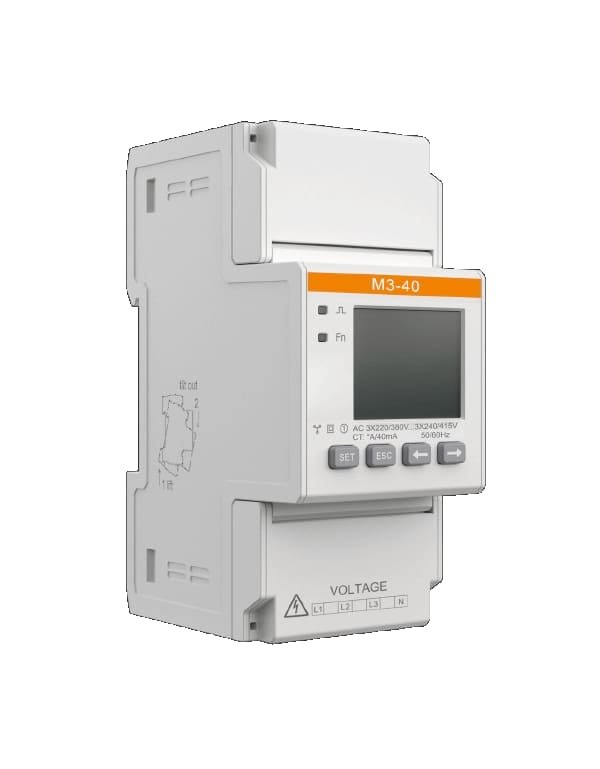 O Meter SolaX Trifásico M3-40 (contador) é a solução essencial para o seguimento preciso e fiável do consumo e da exportação de energia solar fotovoltaica. Este medidor compacto com Transformador de Corrente (TC) é a escolha ideal para todas as instalações solares monofásicas que utilizam inversores SolaX.